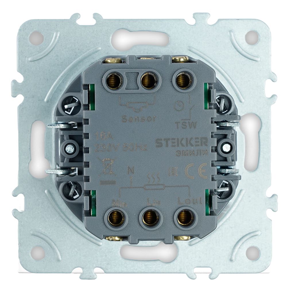 Терморегулятор механический STEKKER RSW00-5120-01, серия Эмили, с подсветкой (зеленый/желтый), тип установки - скрытый, размер изделия 74*74*54мм., цвет белый фарфор, soft touch, материал изделия поликарбонат, латунь, нержавеющая сталь. Номинальное напряжение 230, номинальный ток 16А, IP20