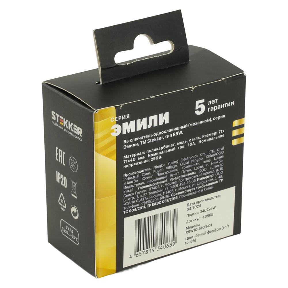 Выключатели одноклавишный STEKKER RSW10-5103-01 , серия Эмили тип установки - скрытый, размер изделия 71*71*40мм., цвет белый фарфор, soft touch, материал изделия поликарбонат, латунь, сталь. Номинальное напряжение 250 , номинальный ток 10А, 20
