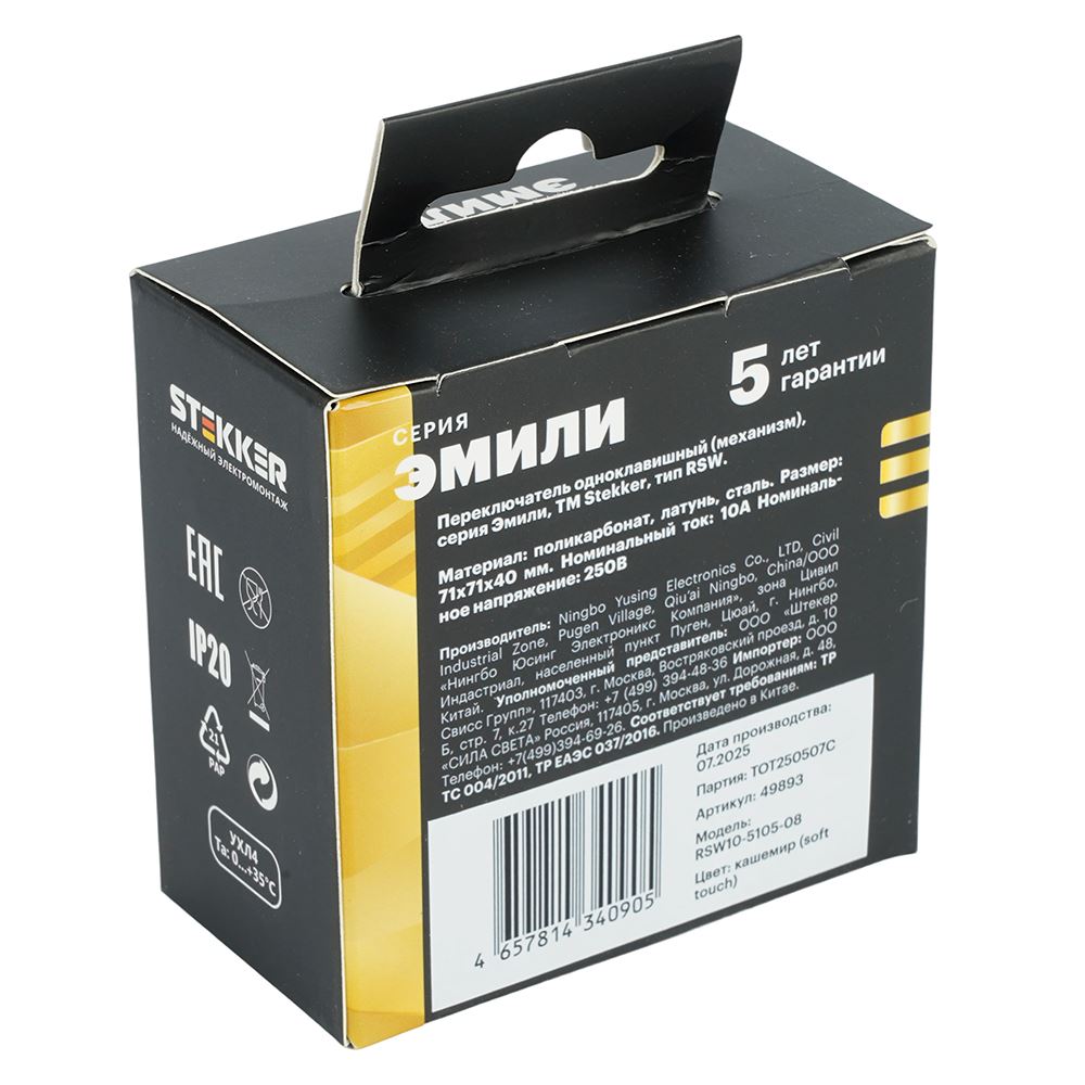 Выключатели одноклавишный STEKKER RSW10-5105-08, серия Эмили тип установки - скрытый, размер изделия 71*71*40мм., цвет кашемир, soft touch, материал изделия поликарбонат, латунь, сталь. Номинальное напряжение 250 , номинальный ток 10А, 20