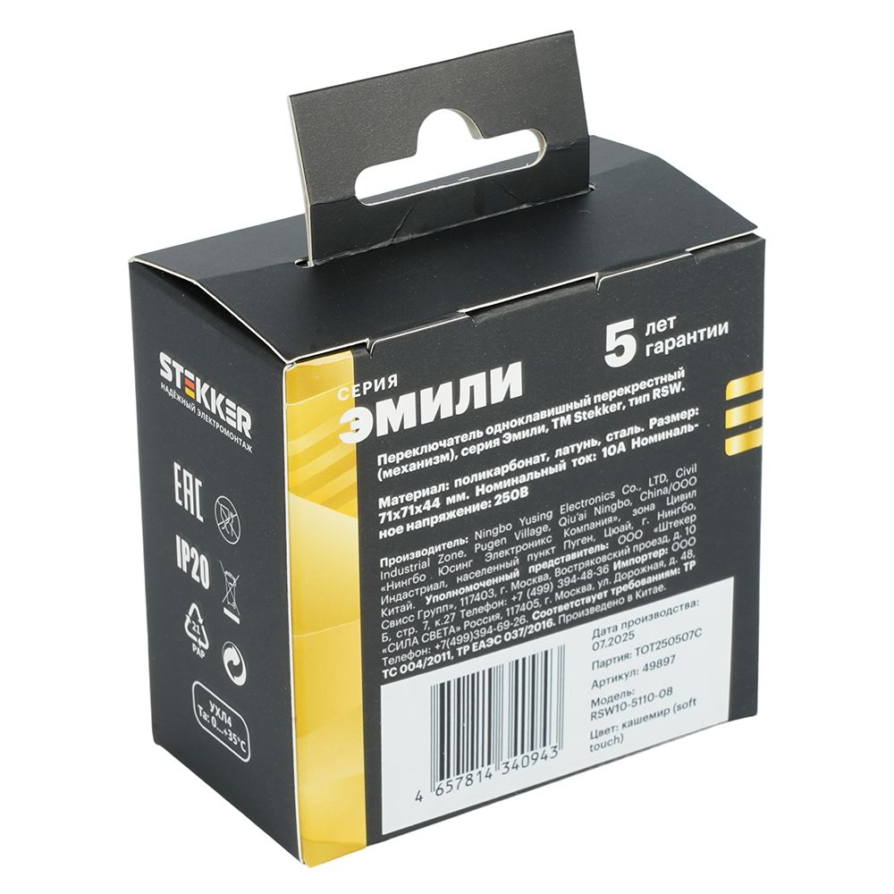 Выключатели одноклавишный STEKKER RSW10-5110-08, серия Эмили тип установки - скрытый, размер изделия 71*71*40мм., цвет кашемир, soft touch, материал изделия поликарбонат, латунь, сталь. Номинальное напряжение 250 , номинальный ток 10А, 20