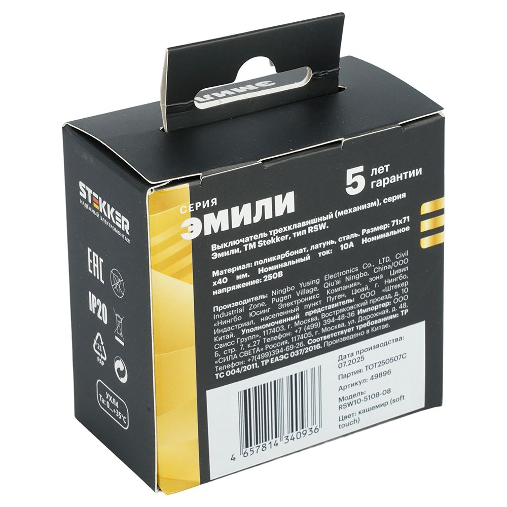 Выключатели трехклавишный STEKKER RSW10-5108-08, серия Эмили тип установки - скрытый, размер изделия 71*71*40мм., цвет кашемир, soft touch, материал изделия поликарбонат, латунь, сталь. Номинальное напряжение 250 , номинальный ток 10А, 20