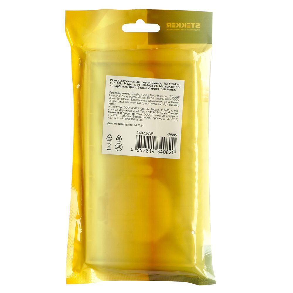 Рамка STEKKER PFR00-5002-01 (срок службы 25 лет) на гнездо, , . Материал: поликарбонат, цвет белый фарфор, soft touch, размер 153*82*9,4мм. Номинальное напряжение , номинальный ток , диапазон рабочих температур ,