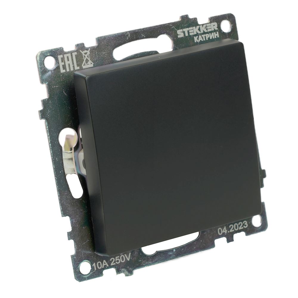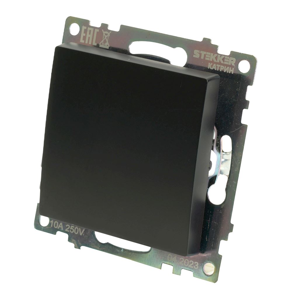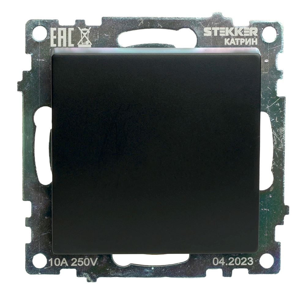 Выключатели одноклавишный STEKKER GLS10-7110-05, серия Катрин тип установки - скрытый, размер изделия 72*72*35мм., цвет черный, материал изделия поликарбонат, латунь. Номинальное напряжение 250 , номинальный ток 10А, IP20
