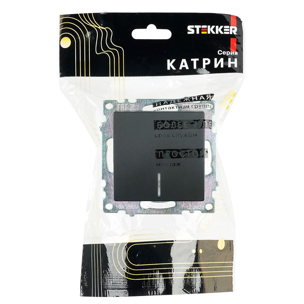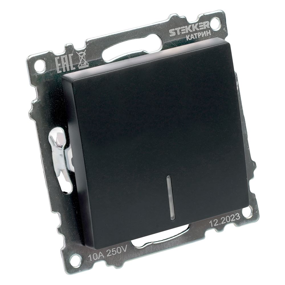 Выключатели одноклавишный STEKKER GLS10-7101-05, серия Катрин, с подсветкой (желтый), тип установки - скрытый, размер изделия 72*72*35мм., цвет черный, материал изделия поликарбонат, латунь. Номинальное напряжение 250 , номинальный ток 10А, IP20
