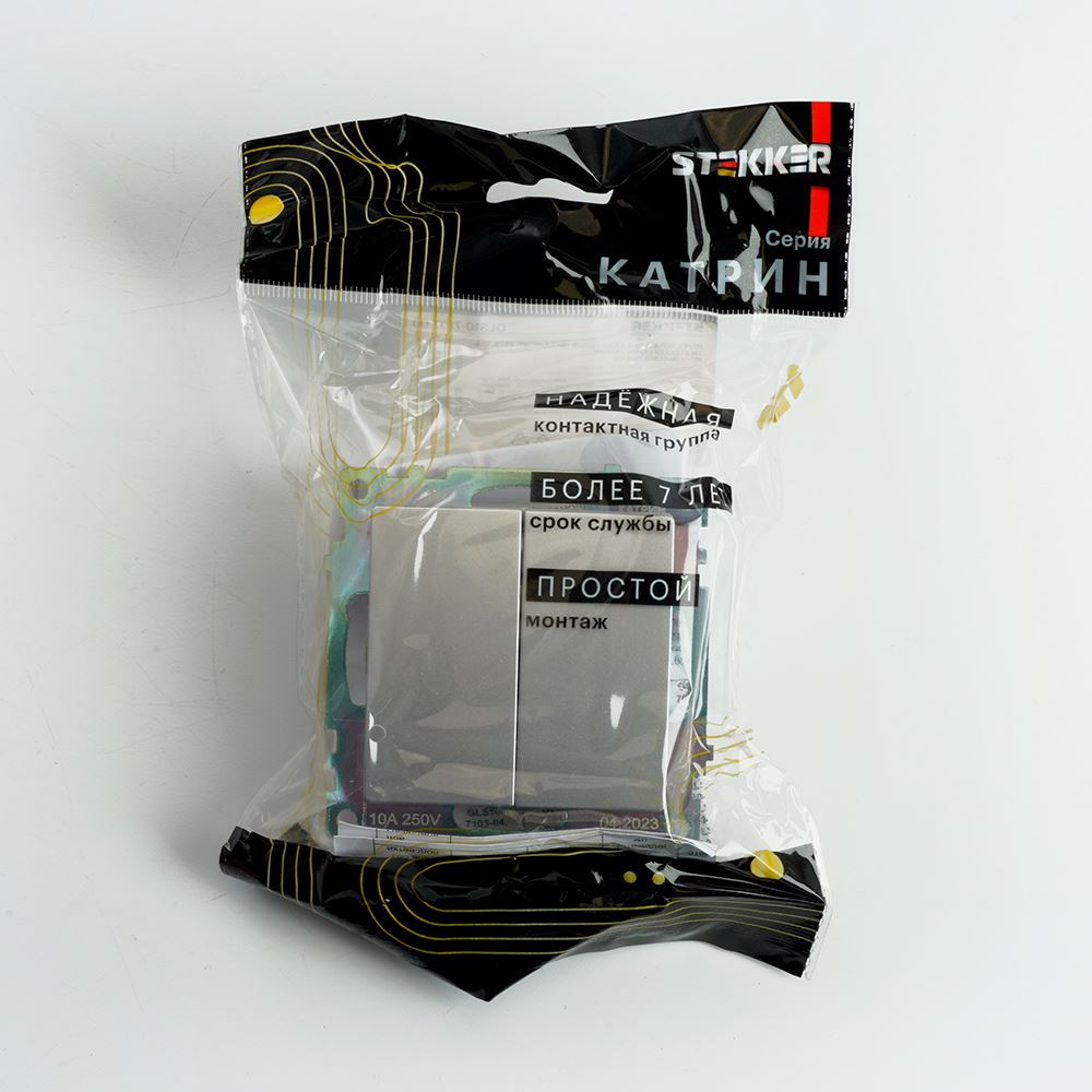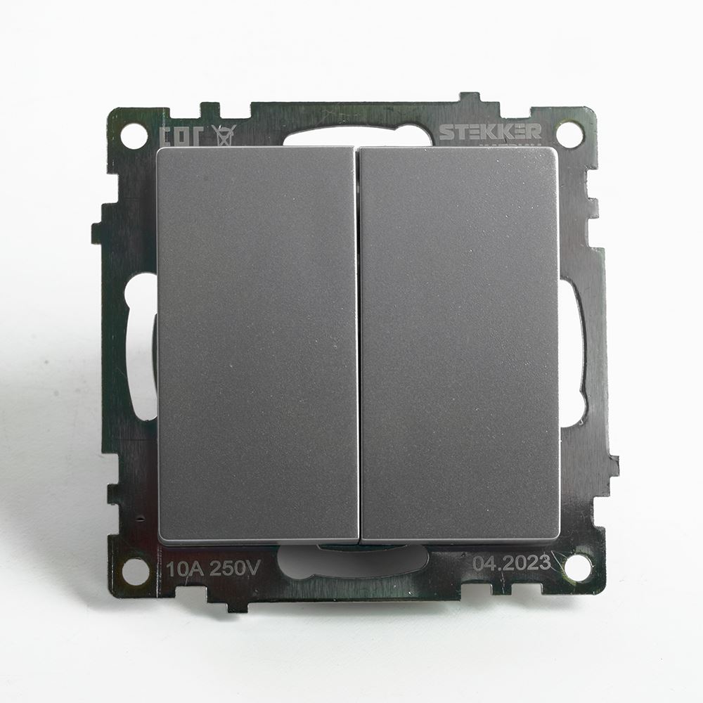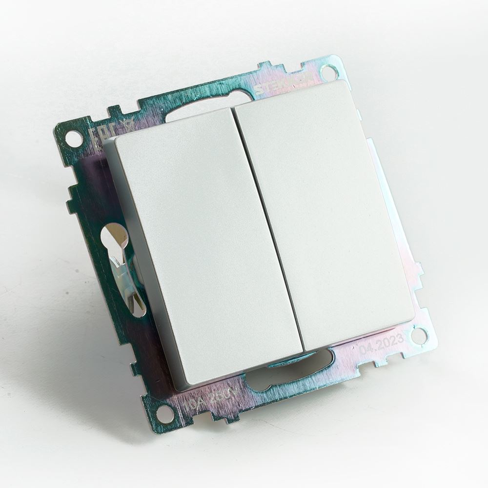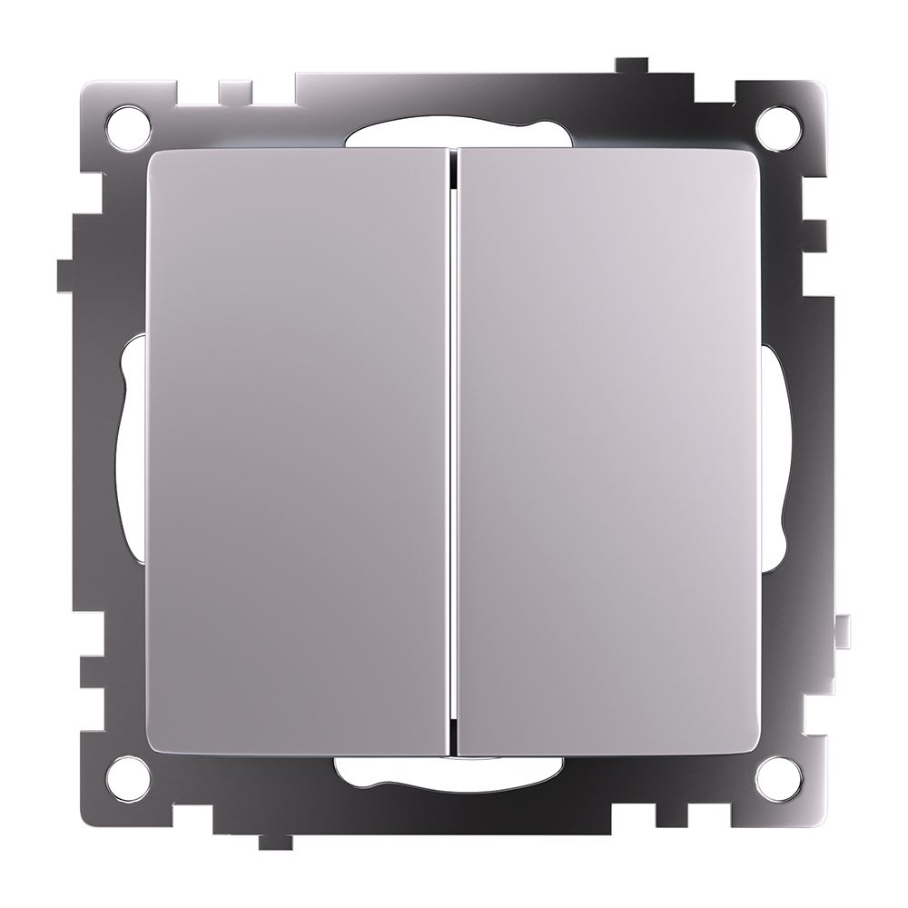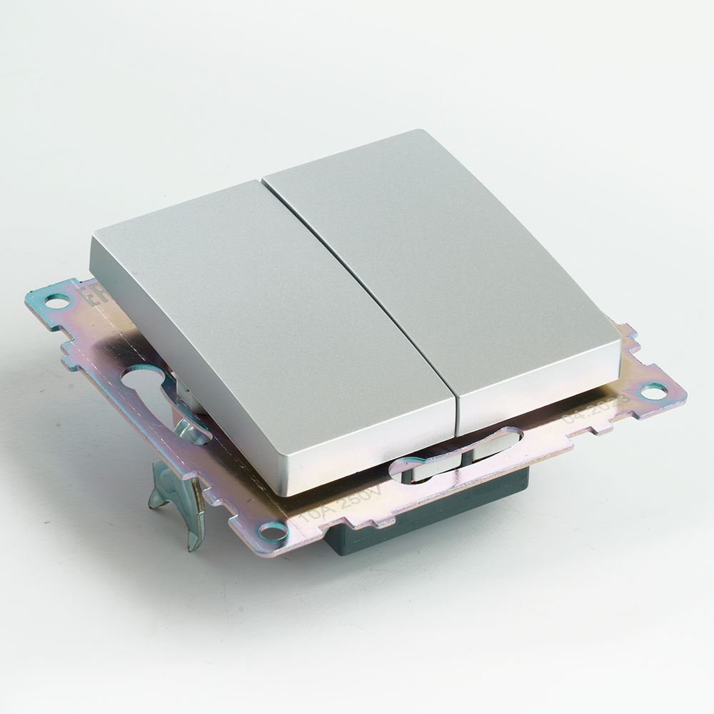 Выключатели двухклавишный STEKKER GLS10-7107-03, серия Катрин тип установки - скрытый, размер изделия 72*72*35мм., цвет серебро, материал изделия поликарбонат, латунь. Номинальное напряжение 250 , номинальный ток 10А, IP20