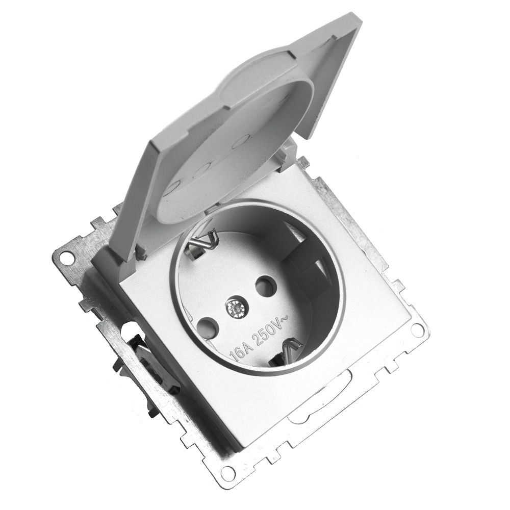 Розетка STEKKER GLS16-7112-03 на 1 гнездо, с крышкой, с заземлением. Материал: поликарбонат, латунь, цвет серебро, размер 72*72*50мм. Номинальное напряжение 250, номинальный ток 16А, диапазон рабочих температур 0..+35°C, IP20