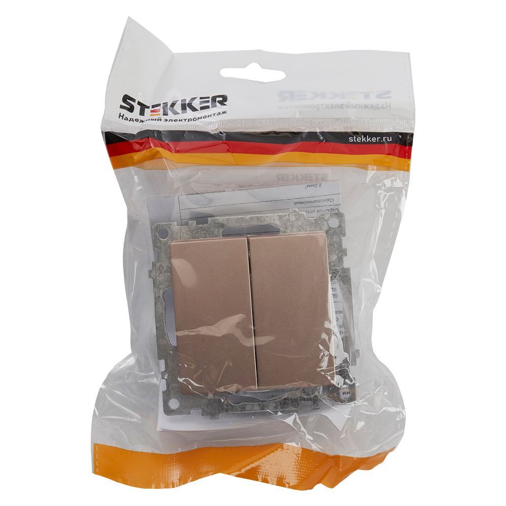 Выключатели двухклавишный STEKKER GLS10-7104-02 , серия Катрин тип установки - скрытый, размер изделия 72*72*35мм., цвет шампань, материал изделия поликарбонат, латунь. Номинальное напряжение 250 , номинальный ток 10А, IP20