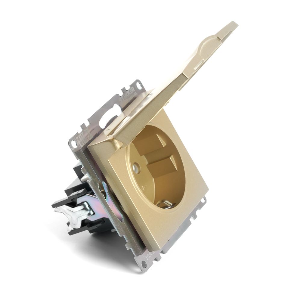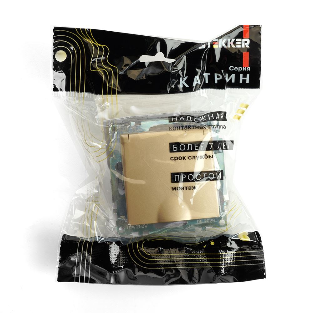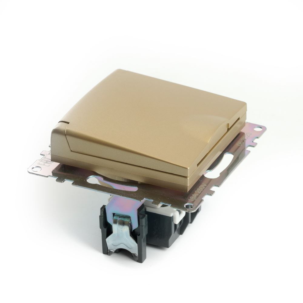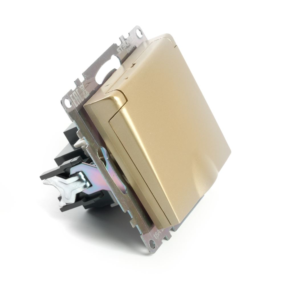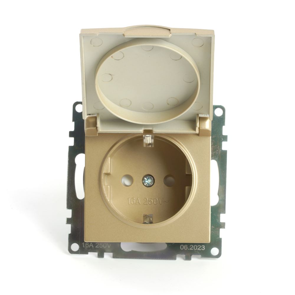 Розетка STEKKER GLS16-7112-08 на 1 гнездо, с крышкой, с заземлением. Материал: поликарбонат, латунь, цвет золото, размер 72*72*50мм. Номинальное напряжение 250, номинальный ток 16А, диапазон рабочих температур 0..+35°C, IP20