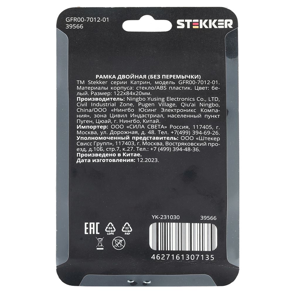 Рамка STEKKER GFR00-7012-01 на гнездо, , . Материал: Закаленное стекло, цвет белый, размер 122*84*20мм. Номинальное напряжение , номинальный ток , диапазон рабочих температур ,