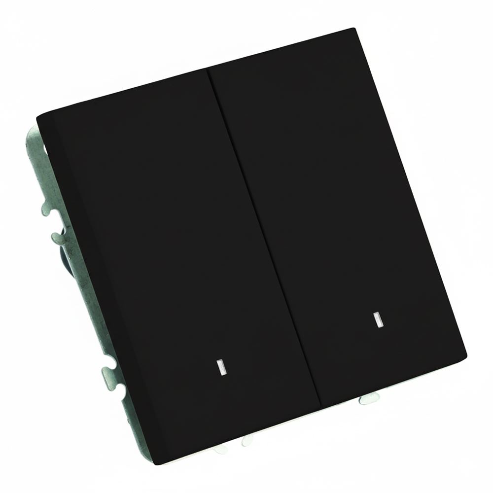 Выключатели двухклавишный STEKKER RSW10-5102-05, серия Эмили, с подсветкой (белый), тип установки - скрытый, размер изделия 71*71*40мм., цвет черный уголь, soft touch, материал изделия поликарбонат, латунь, сталь. Номинальное напряжение 250 , номинальный ток 10А, 20