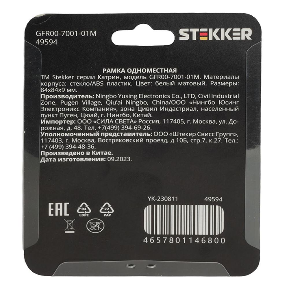Рамка STEKKER GFR00-7001-01M на гнездо, , . Материал: Стекло/ABS пластик, цвет белый матовый, размер 84*84*9мм. Номинальное напряжение , номинальный ток , диапазон рабочих температур ,