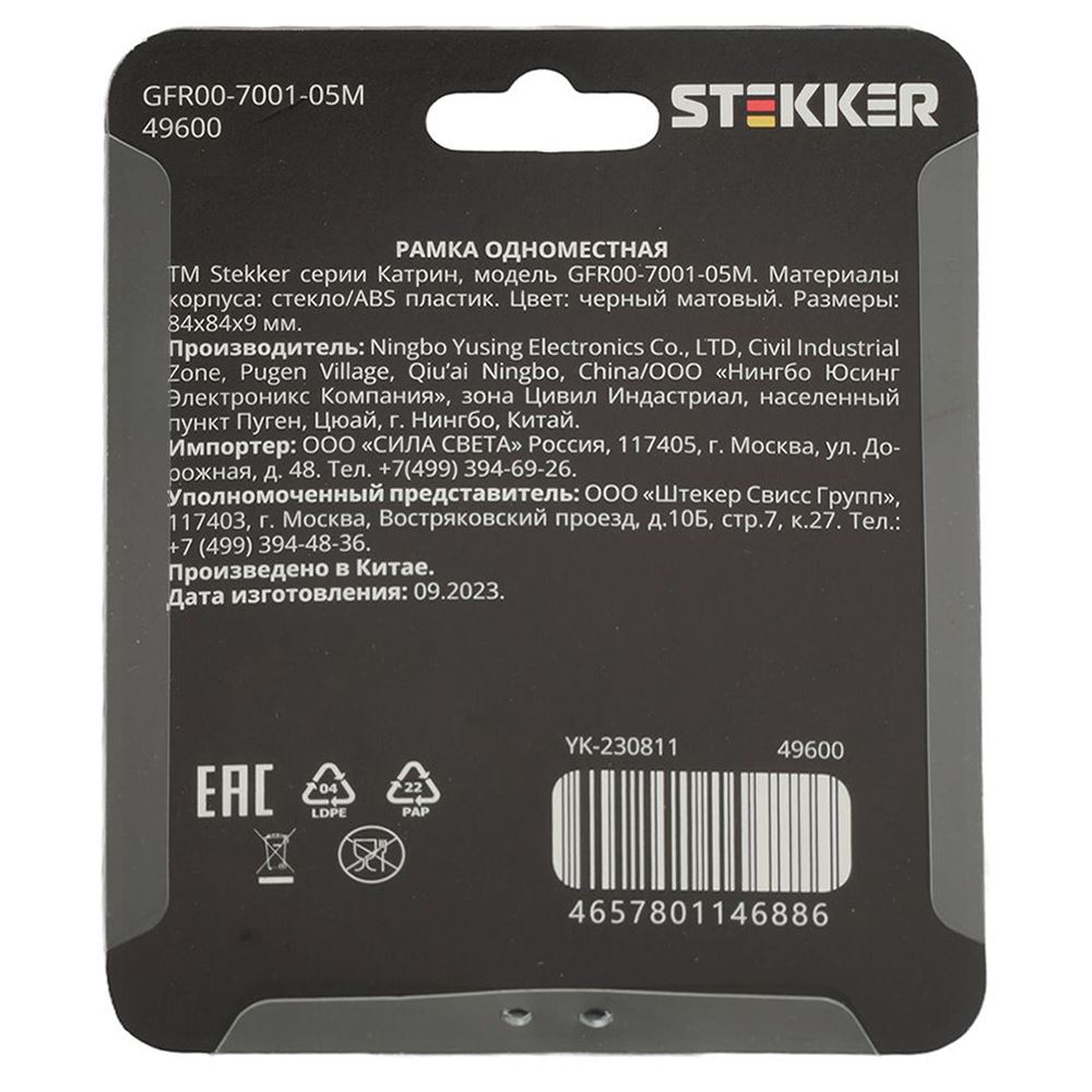 Рамка STEKKER GFR00-7001-05М на гнездо, , . Материал: Стекло/ABS пластик, цвет черный матовый, размер 84*84*9мм. Номинальное напряжение , номинальный ток , диапазон рабочих температур ,