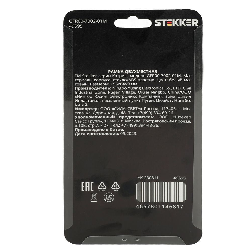 Рамка STEKKER GFR00-7002-01M на гнездо, , . Материал: Стекло/ABS пластик, цвет белый матовый, размер 155*84*9мм. Номинальное напряжение , номинальный ток , диапазон рабочих температур ,