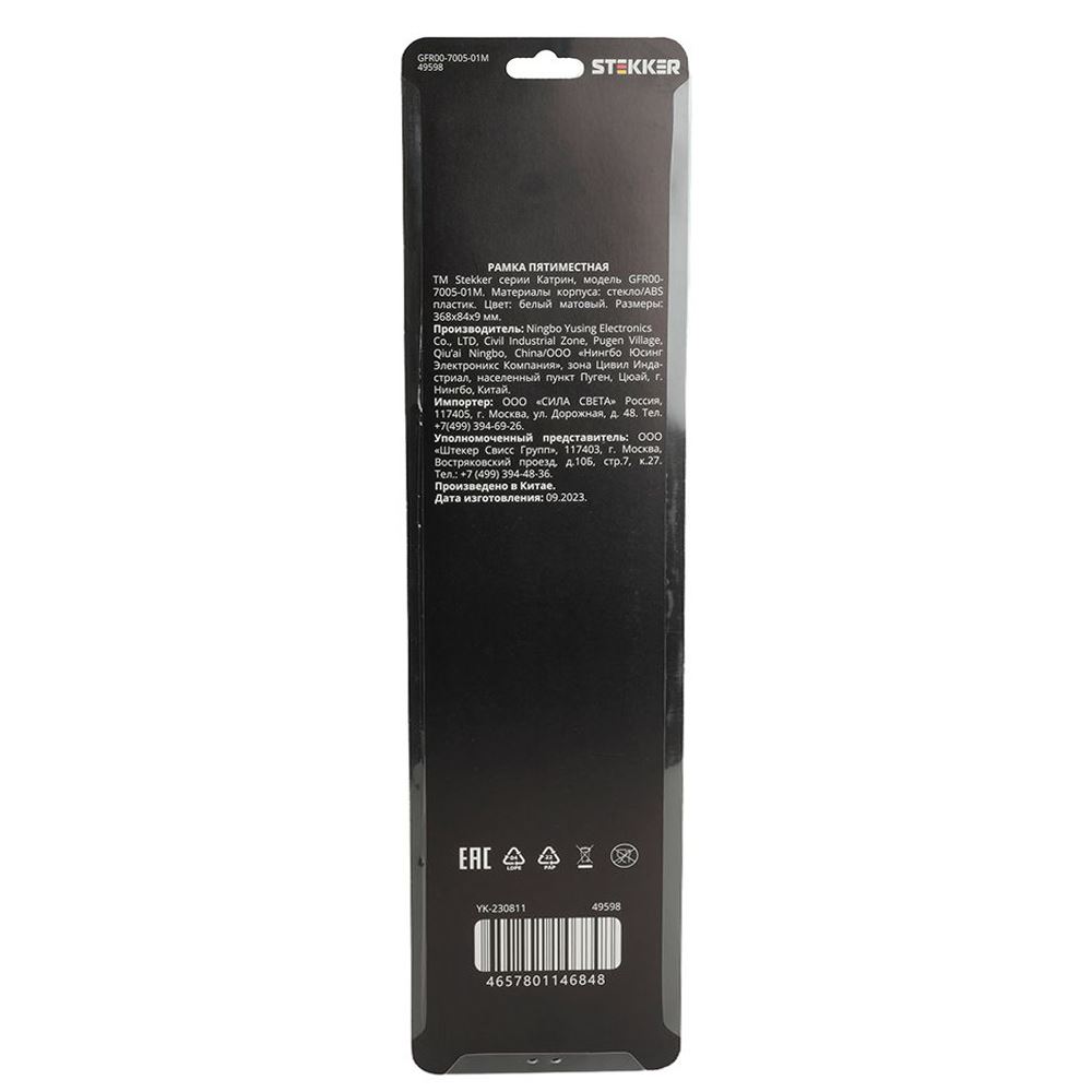 Рамка STEKKER GFR00-7005-01М на гнездо, , . Материал: Стекло/ABS пластик, цвет белый матовый, размер 368*84*9мм. Номинальное напряжение , номинальный ток , диапазон рабочих температур ,