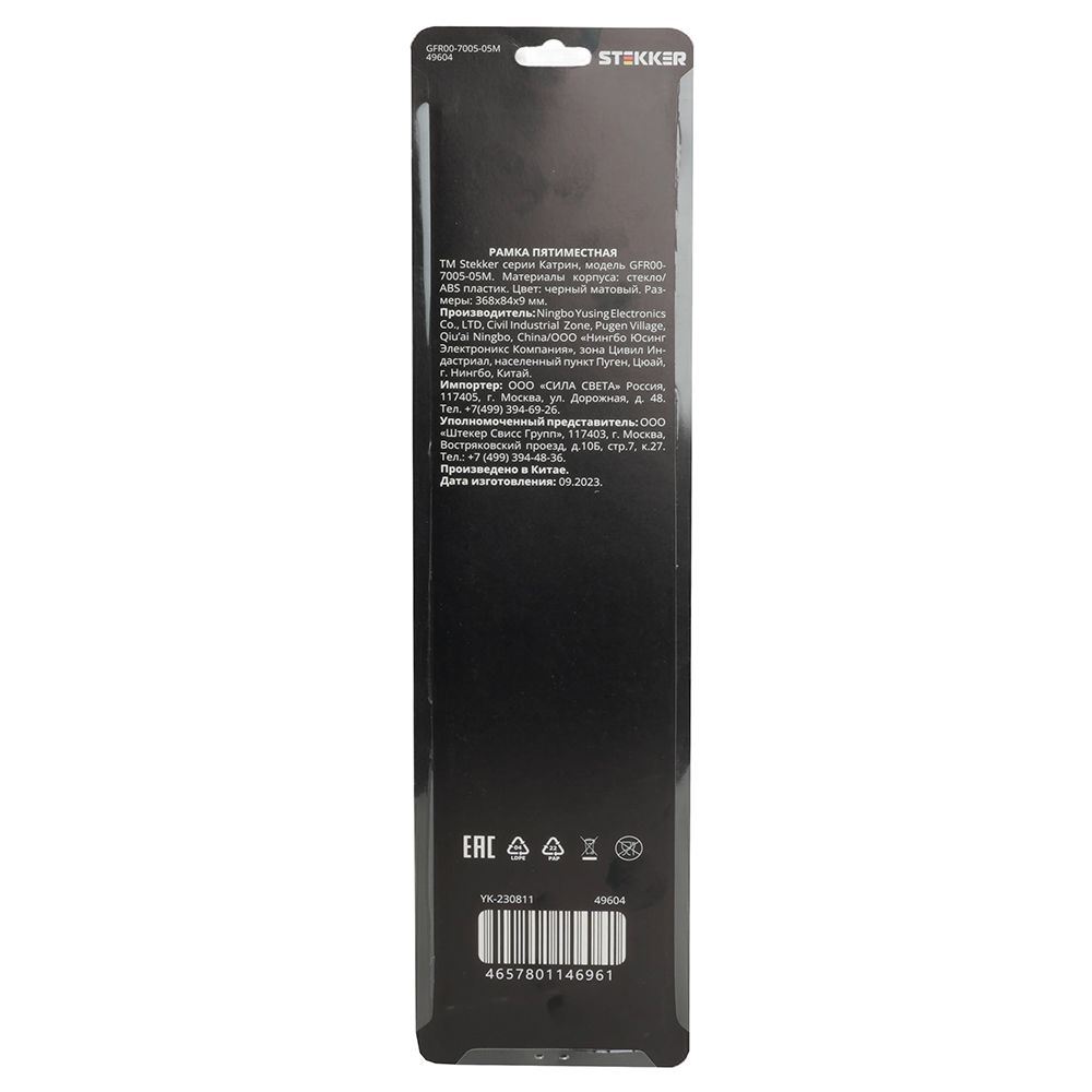 Рамка STEKKER GFR00-7005-05М на гнездо, , . Материал: Стекло/ABS пластик, цвет черный матовый, размер 368*84*9мм. Номинальное напряжение , номинальный ток...