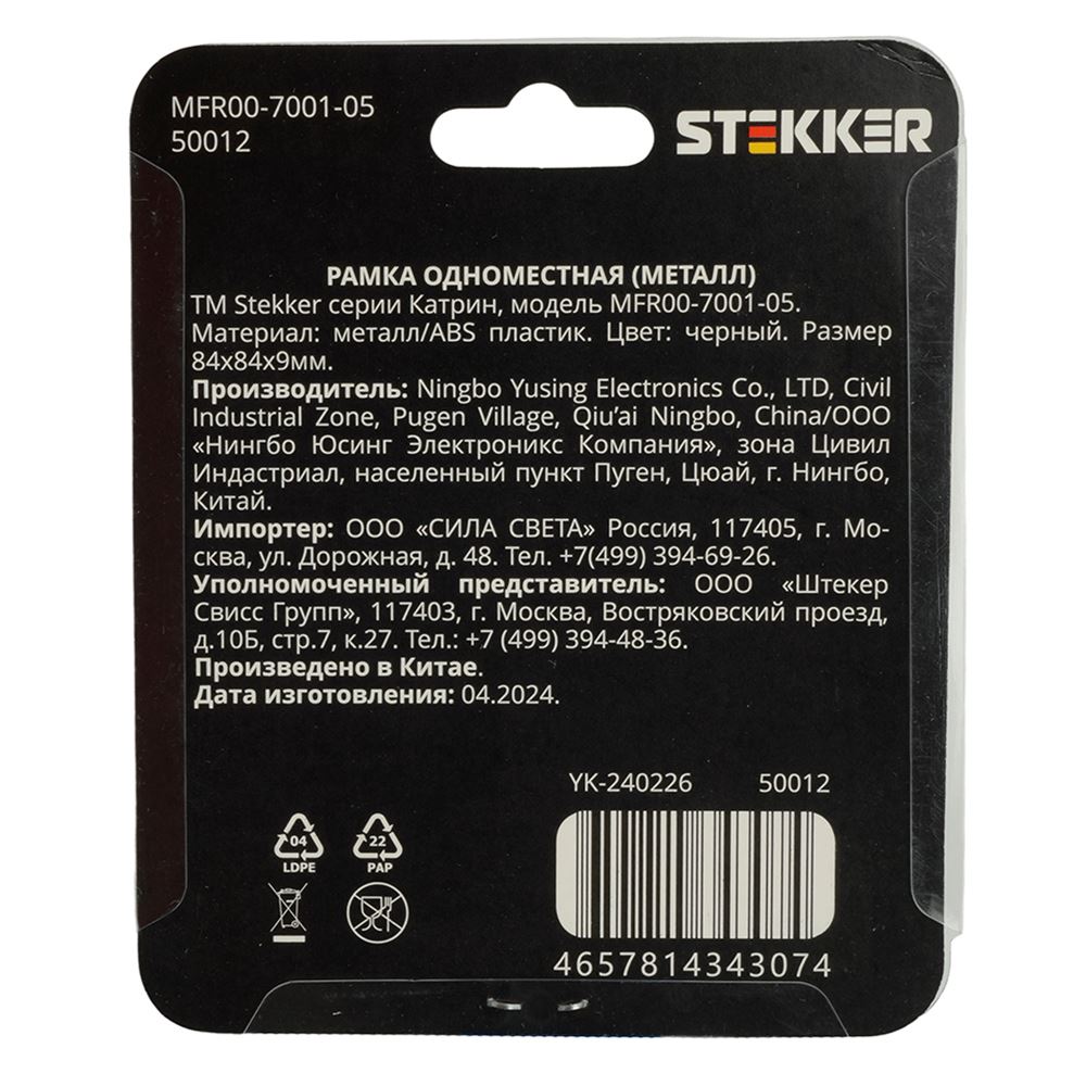 Рамка STEKKER MFR00-7001-05 на гнездо, , . Материал: металл/ABS пластик, цвет черный, размер 84*84*9мм. Номинальное напряжение , номинальный ток , диапазон рабочих температур ,