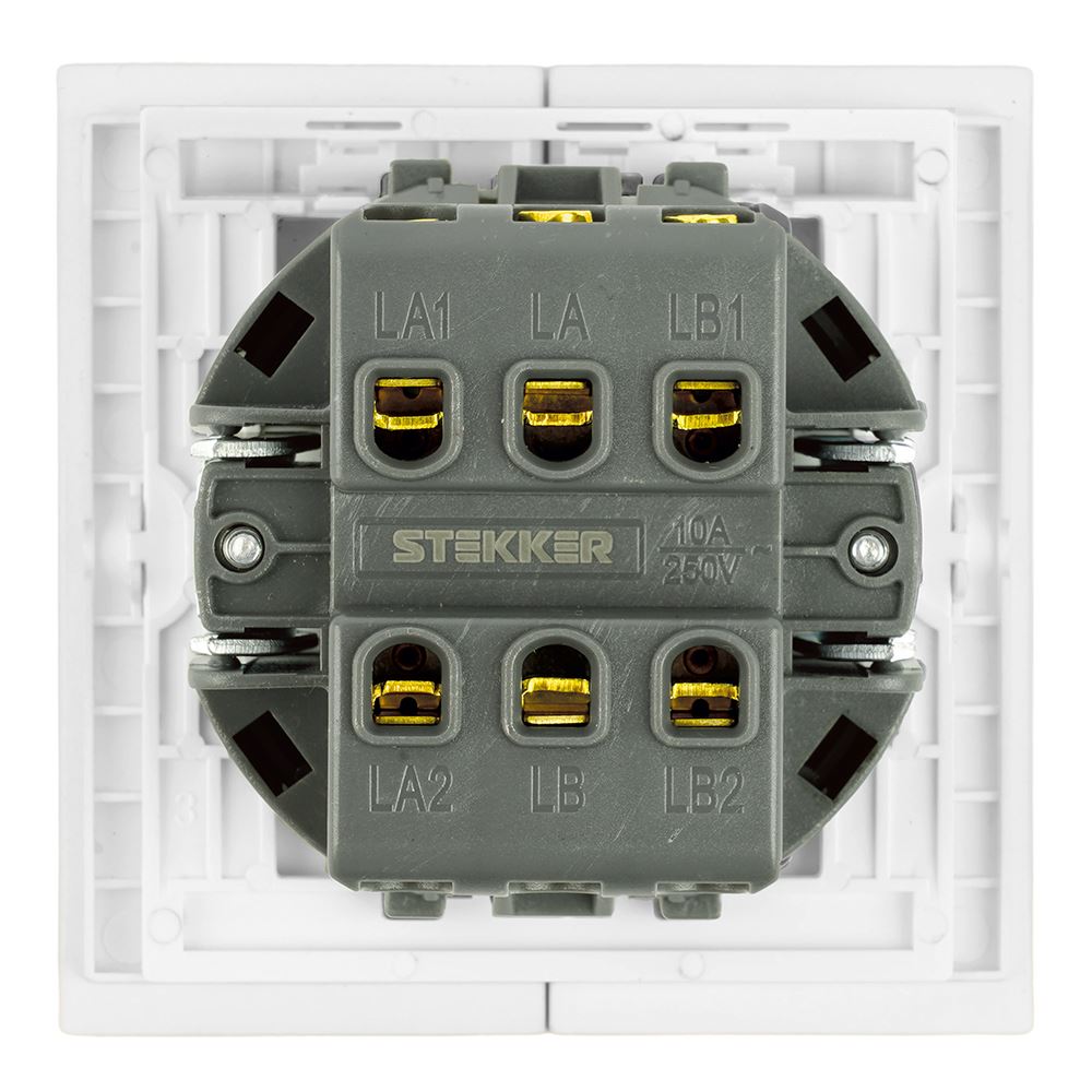 Выключатели двухклавишный STEKKER RSW10-3107-01, серия Мия тип установки - скрытый, размер изделия 71*71*41,5мм., цвет белая магнолия, материал изделия поликарбонат, латунь, сталь. Номинальное напряжение 250 , номинальный ток 10А, 20