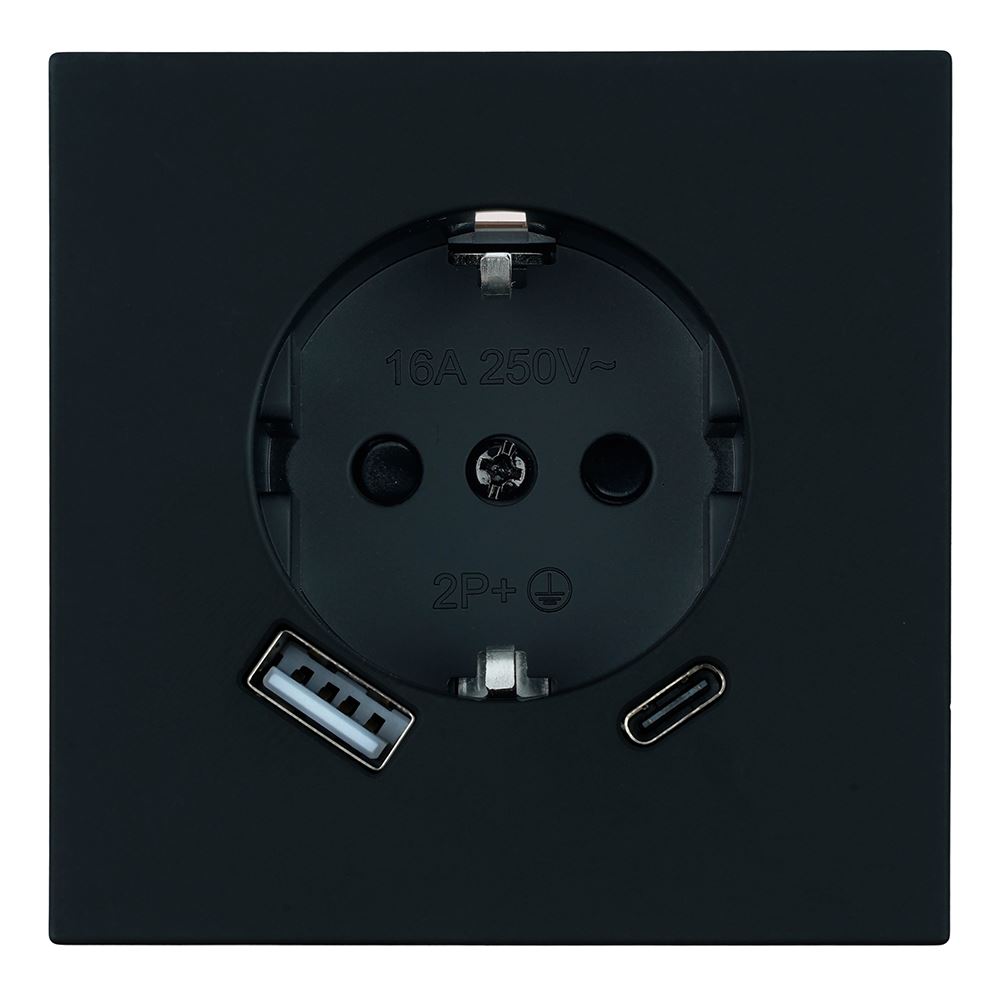 Розетка STEKKER RST16-3119-05 (USB-A:5V~3A,9V~2A,12V~1.5A,Type-C:5V~3A,9V~2.22A,12V~1.67A¶USB-A+Type-C:5V~3A, срок службы 25 лет) на 1+USB+Type C гнездо, -, с заземлением. Материал: поликарбонат, бронза, латунь, сталь, цвет черный бархат, размер 71*71*44,5мм. Номинальное напряжение 250, номинальный ток 16А, диапазон рабочих температур 0..+35°C, 20