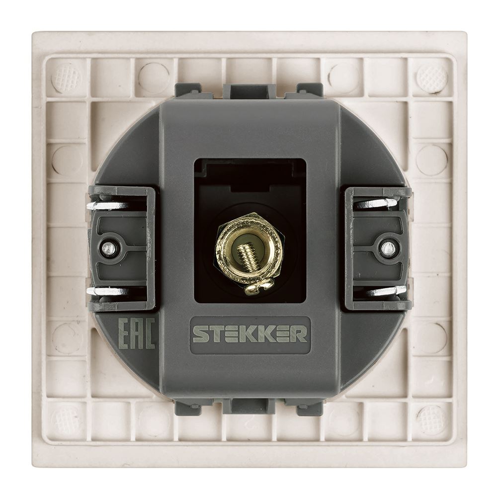 Розетка STEKKER RST00-3108-08 (срок службы 25 лет) на 1 гнездо, -, -. Материал: поликарбонат, латунь, сталь, цвет пудровый жемчуг, размер 71*71*33мм. Номинальное напряжение -, номинальный ток -, диапазон рабочих температур 0..+35°C, 20