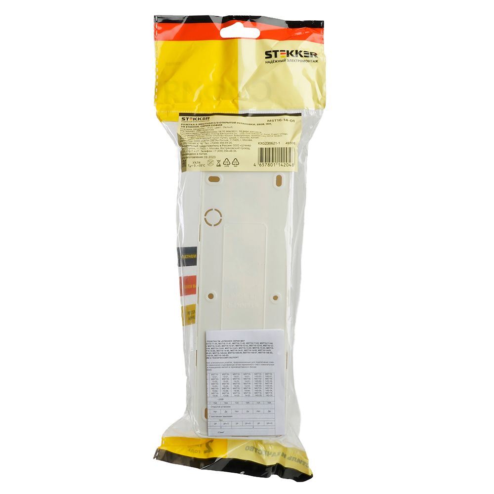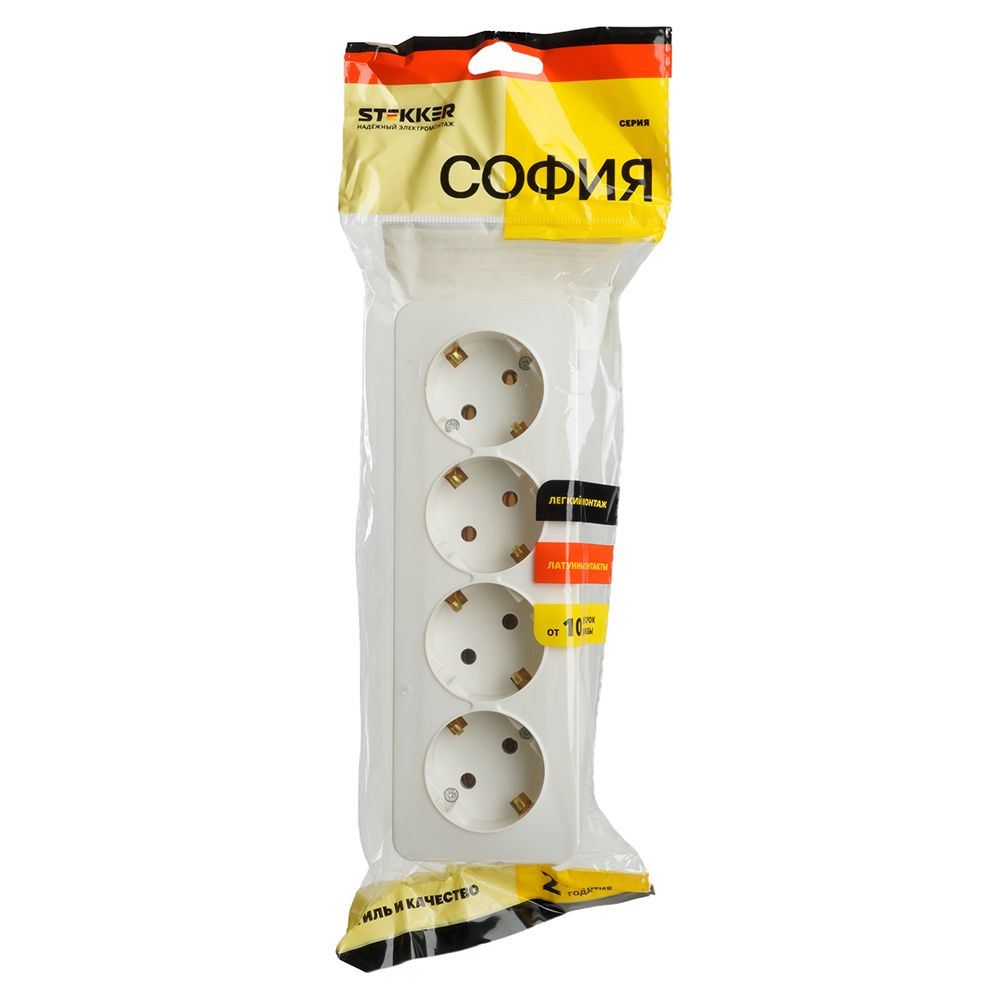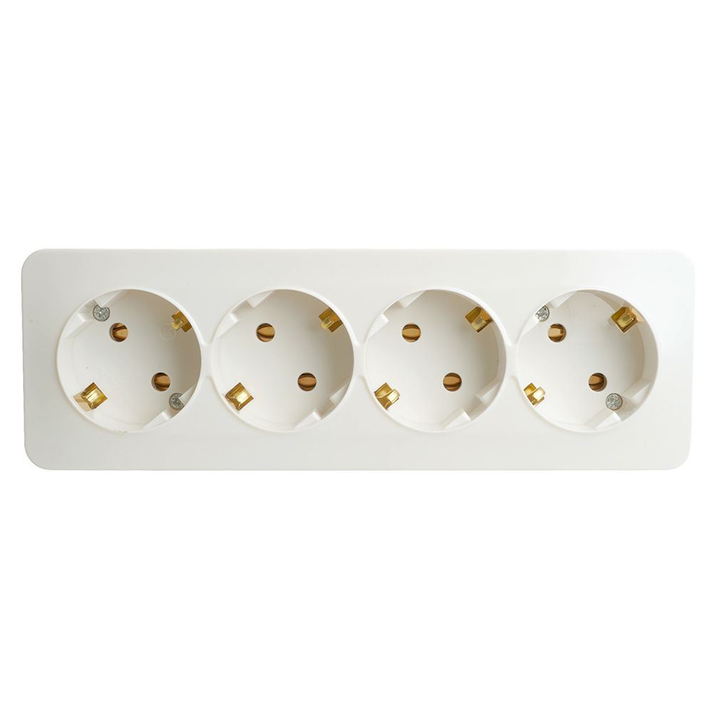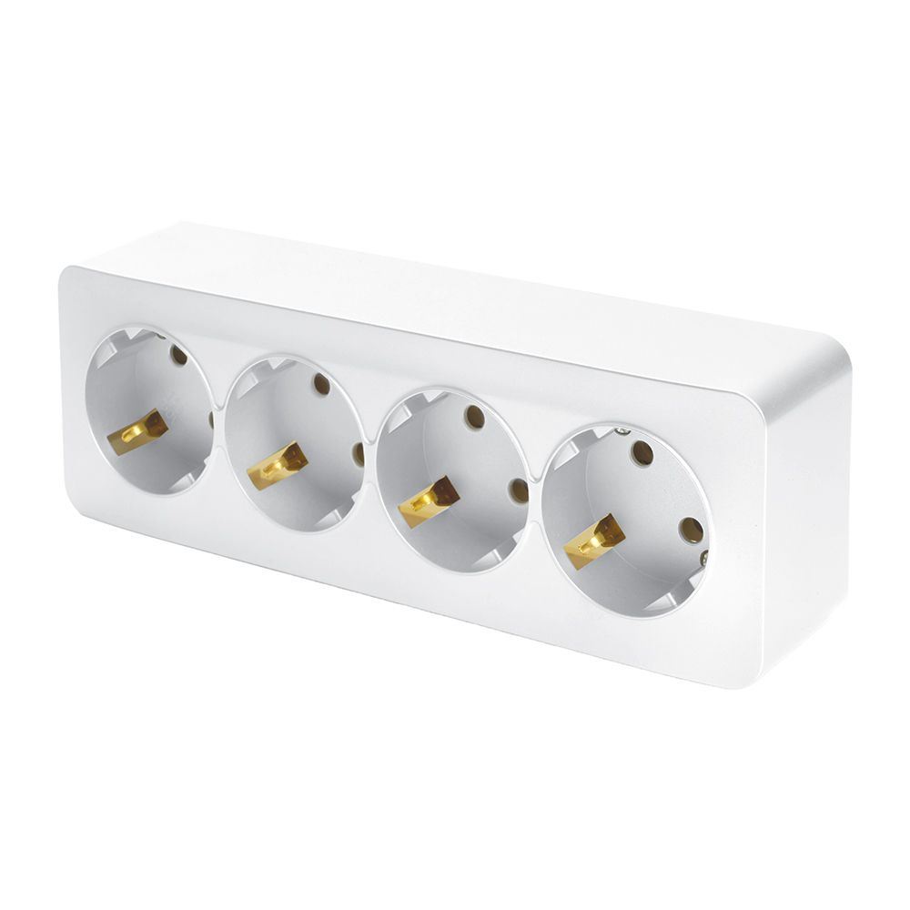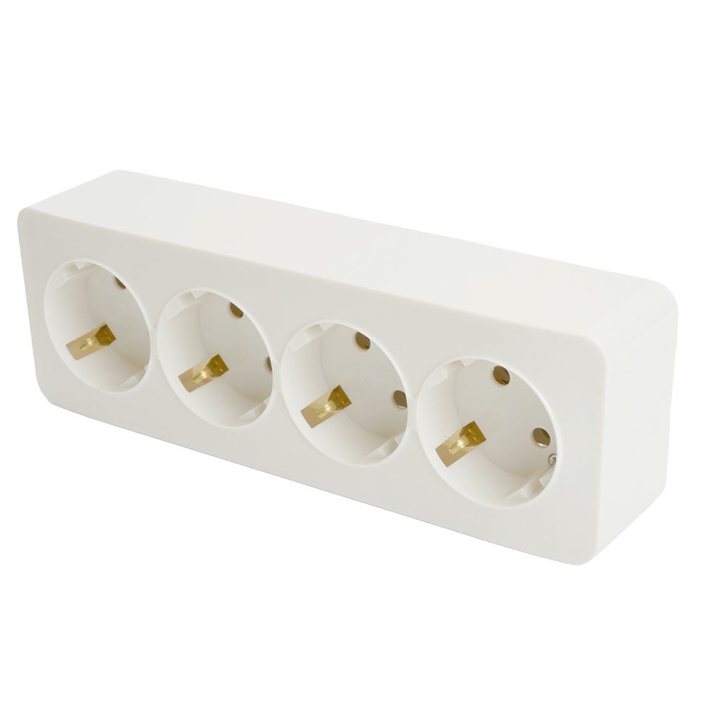 Розетка STEKKER MST16-14-01 на 4 гнездо, с заземлением. Материал: ABS пластик, цвет белый, размер 191*64*42мм. Номинальное напряжение 250, номинальный ток 16А, диапазон рабочих температур 0..+35°C, IP20
