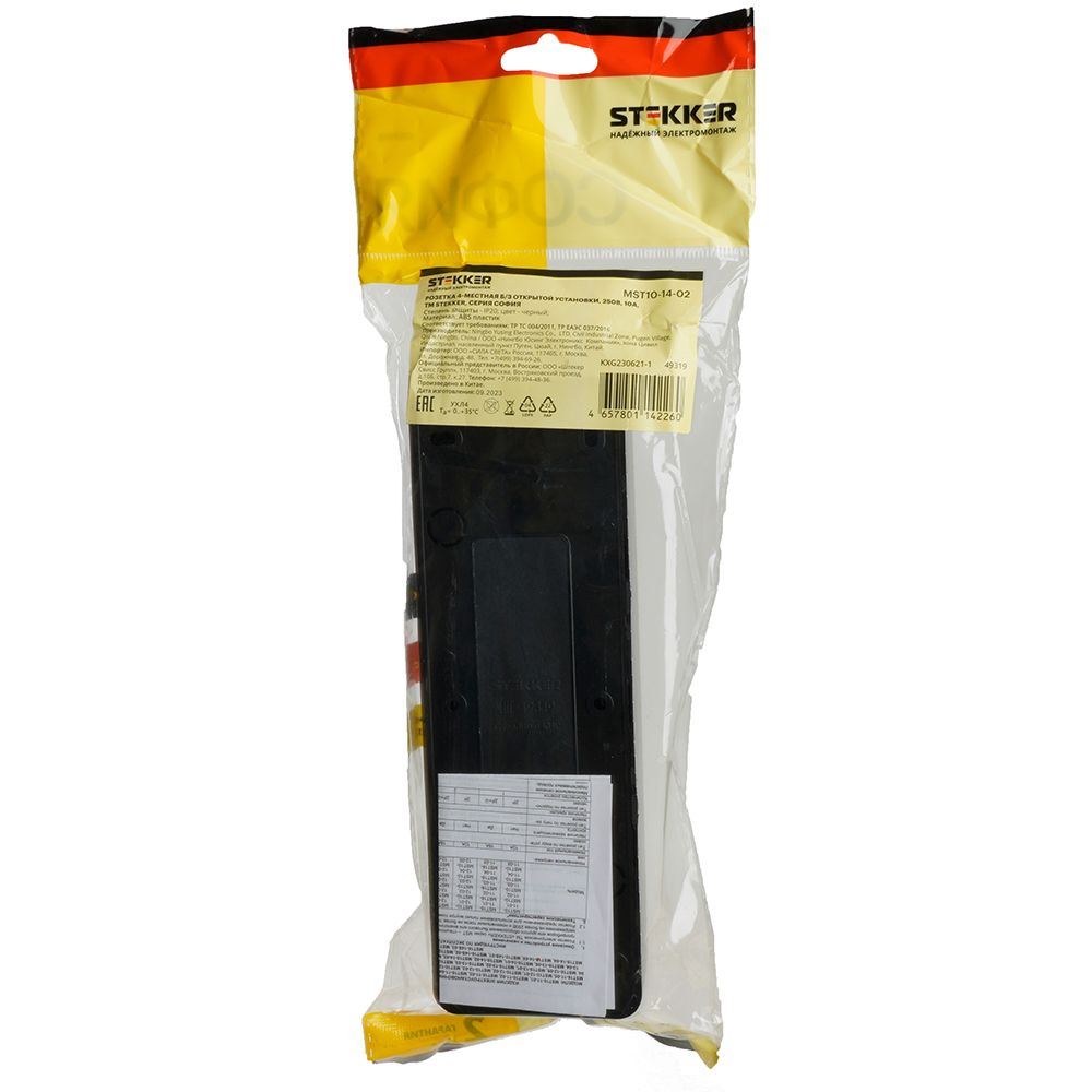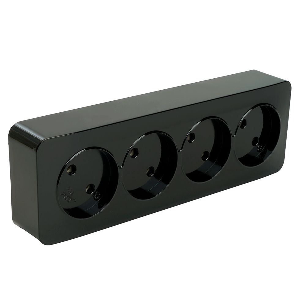 Розетка STEKKER MST10-14-02 на 4 гнездо, без заземления. Материал: ABS пластик, цвет черный, размер 191*64*32мм. Номинальное напряжение 250, номинальный ток 10А, диапазон рабочих температур 0..+35°C, IP20