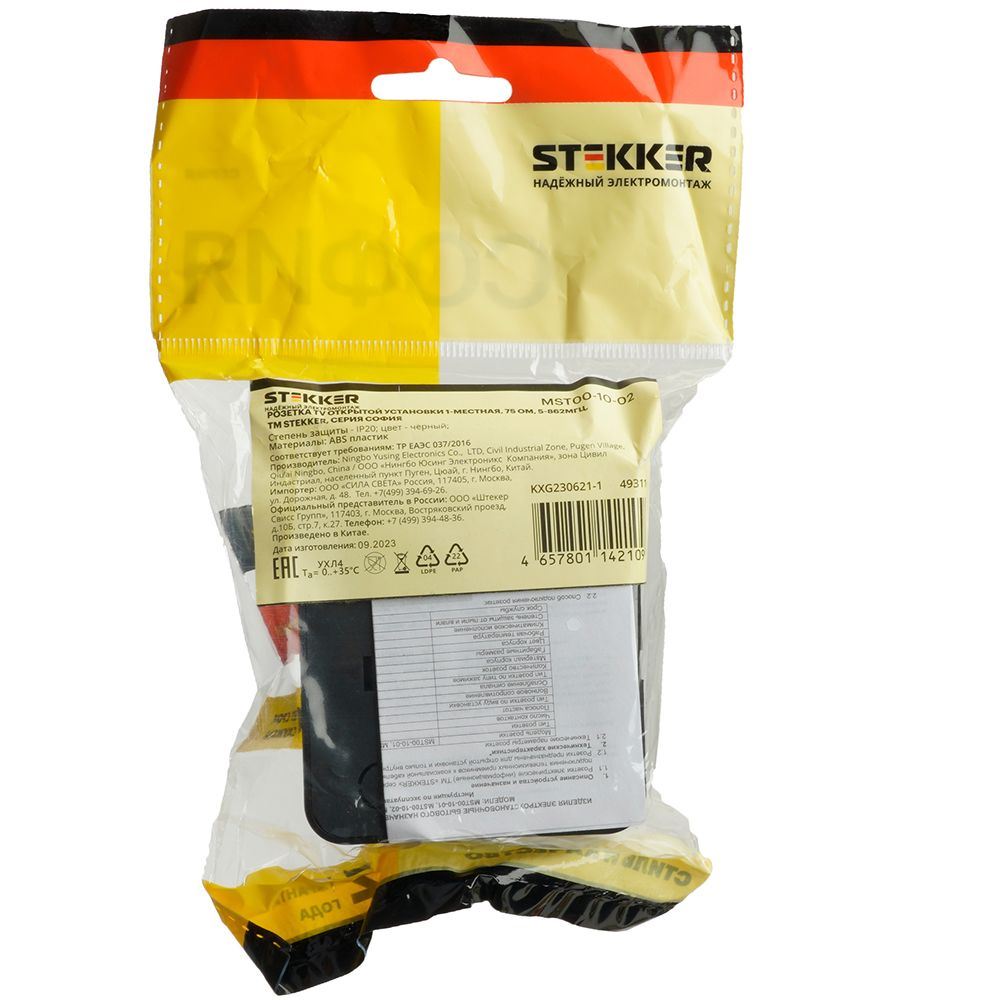 Розетка STEKKER MST00-10-02 на 1 гнездо, без заземления. Материал: ABS пластик, цвет черный, размер 68*68*41мм. Номинальное напряжение -, номинальный ток...