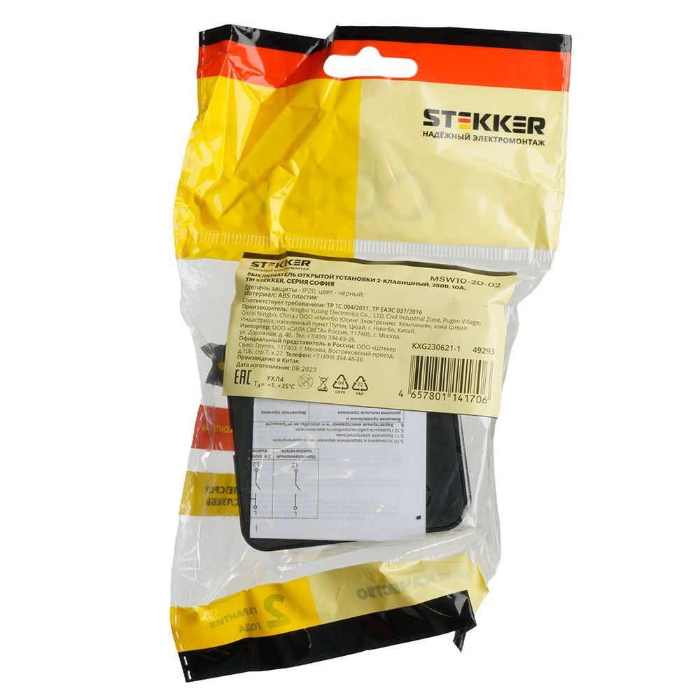 Выключатели двухклавишный STEKKER MSW10-20-02 , серия София тип установки - открытый, размер изделия 69*69*35мм., цвет черный, материал изделия ABS пластик. Номинальное напряжение 250 , номинальный ток 10А, IP20