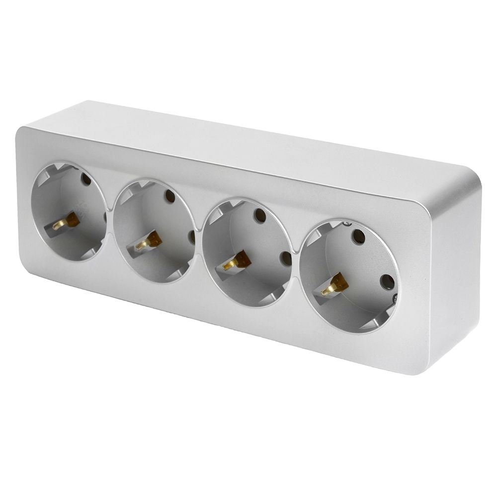 Розетка STEKKER MST16-14-03 на 4 гнездо, с заземлением. Материал: ABS пластик, цвет серебро, размер 191*64*42мм. Номинальное напряжение 250, номинальный ток 16А, диапазон рабочих температур 0..+35°C, IP20