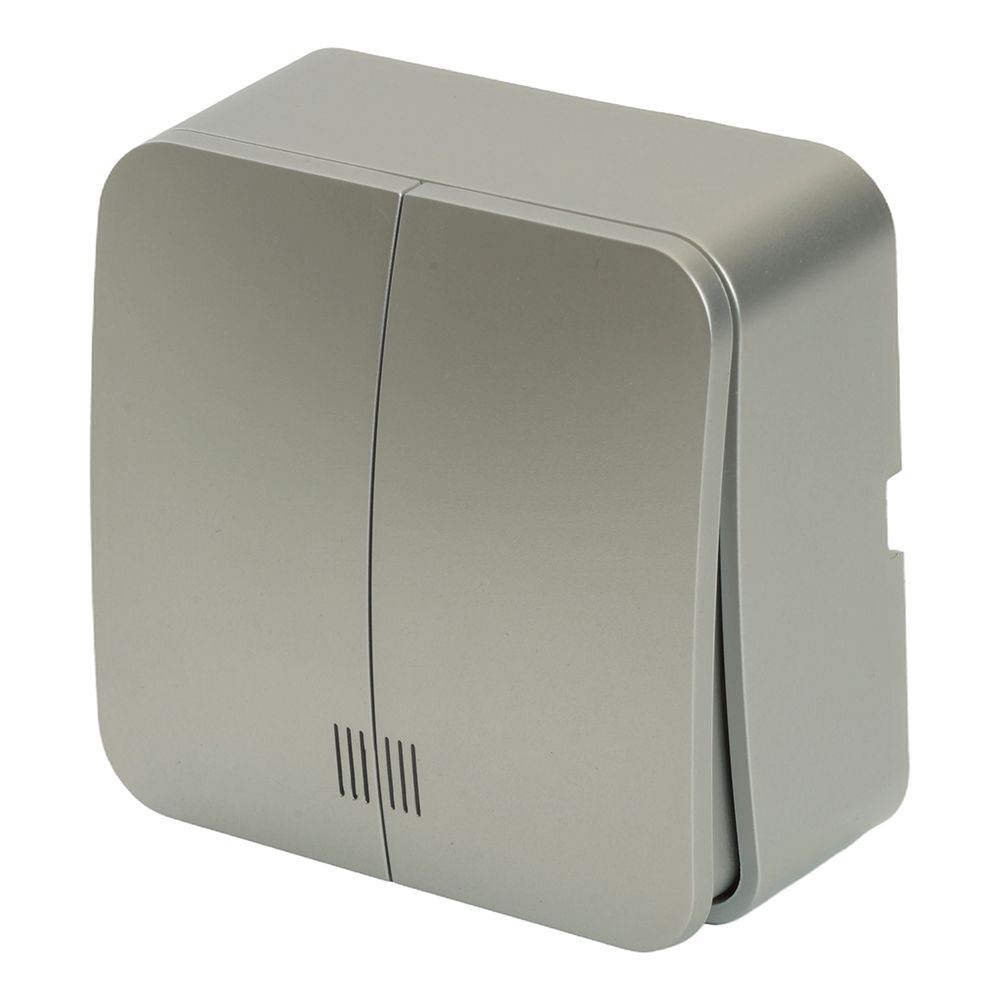 Выключатели двухклавишный STEKKER MSW10-21-03, серия София, с подсветкой (синий), тип установки - открытый, размер изделия 69*69*35мм., цвет серебро, материал изделия ABS пластик. Номинальное напряжение 250 , номинальный ток 10А, IP20