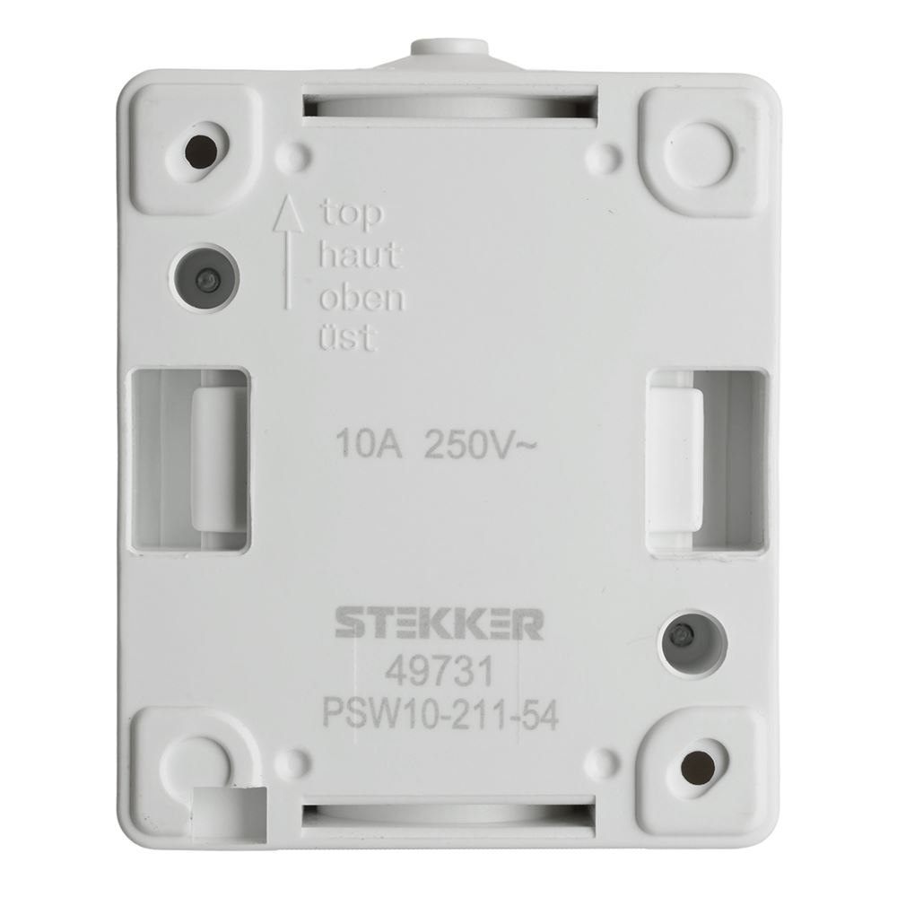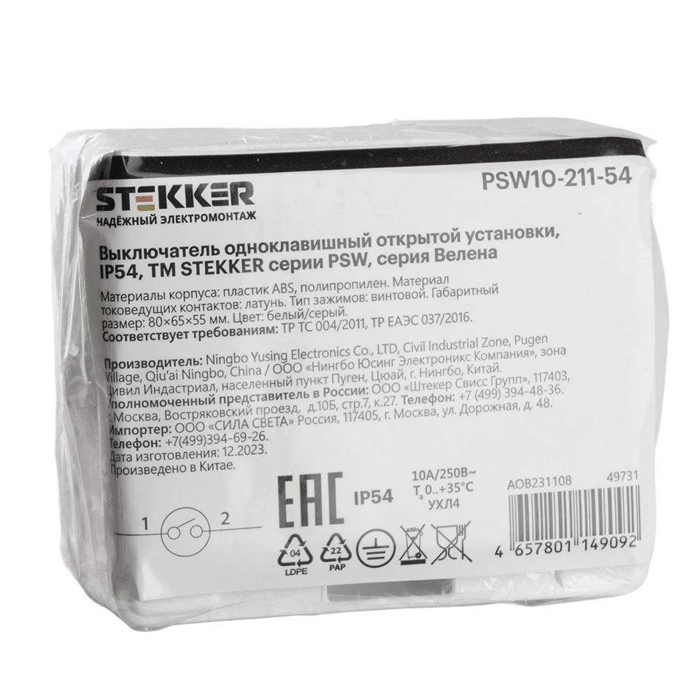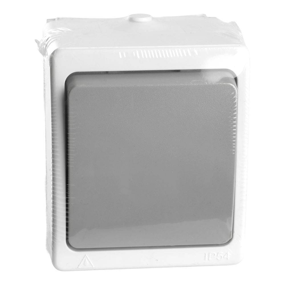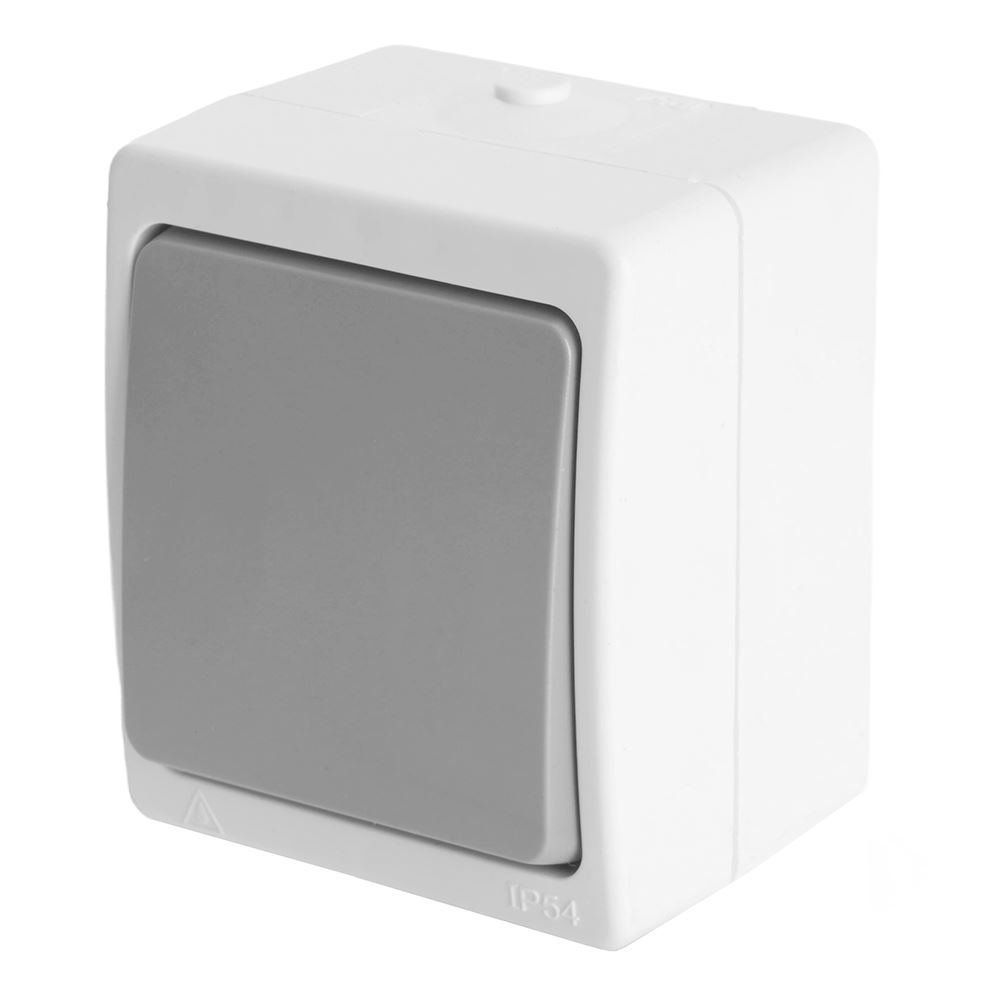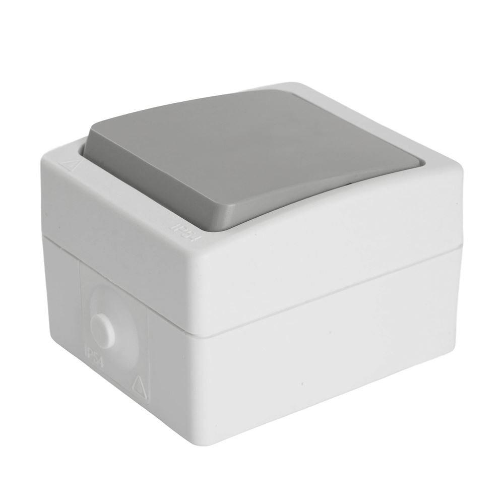 Выключатели одноклавишный STEKKER PSW10-211-54, серия Велена тип установки - открытый, размер изделия 65*83*53мм., цвет белый+серый, материал изделия Полипропилен, ABS пластик. Номинальное напряжение 250 , номинальный ток 10А, IP54
