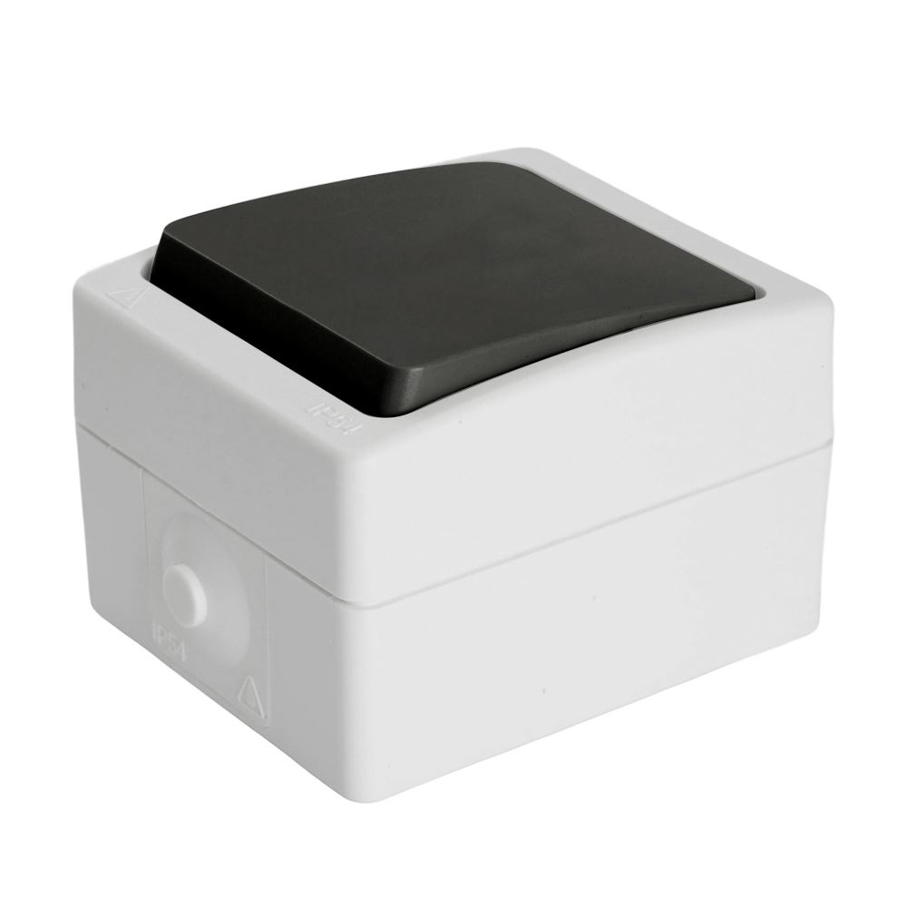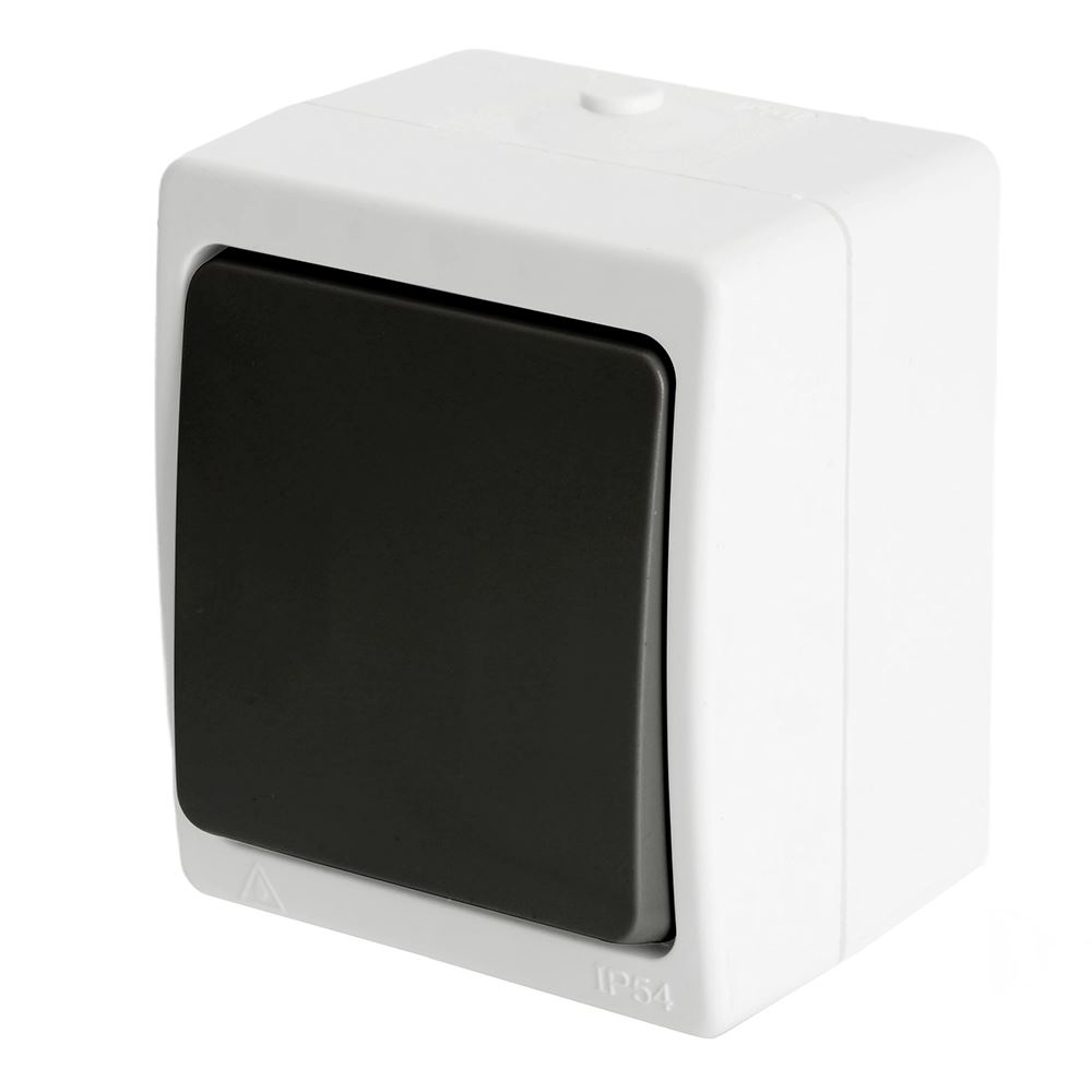 Выключатели одноклавишный STEKKER PSW10-112-54, серия Велена тип установки - открытый, размер изделия 65*83*53мм., цвет серый-графит, материал изделия полипропилен. Номинальное напряжение 250 , номинальный ток 10А, IP54